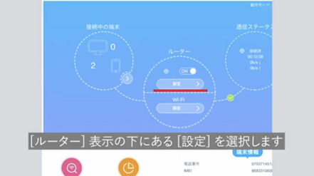 1.各種設定・接続情報画面より「ルーター」の「Wi-Fi」の表示下にある「設定」をクリック